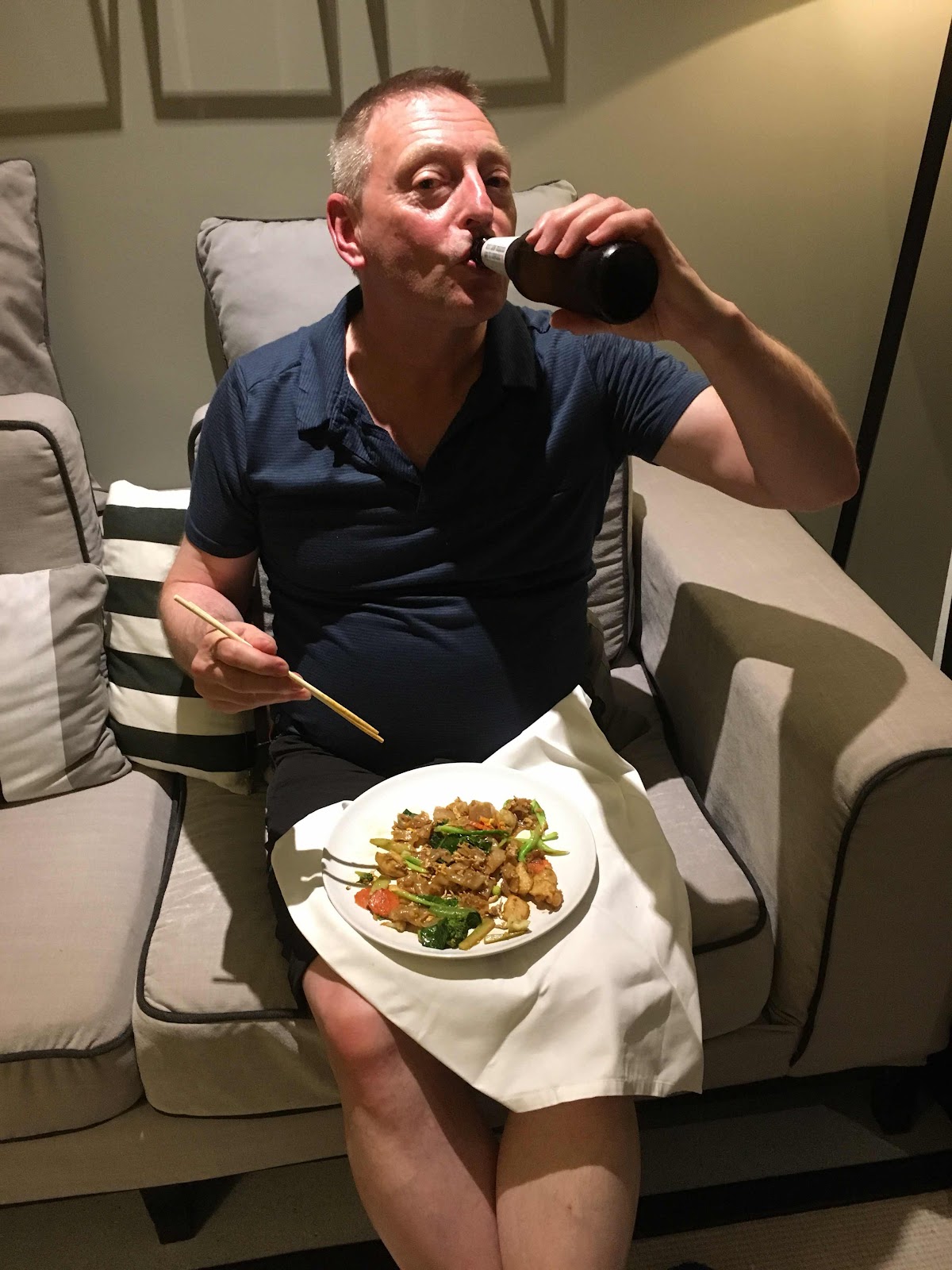 True to her word the cases arrived just as she left. It was only 8.30 but we were shattered and hungry, so we ordered room service. A Pad Thai and a Pad-see-iew. We also raided the mini fridge for the heinously expensive beer. A quick shower then we were tucked up in our 400 thread sheets and, I at least, was out like a light.