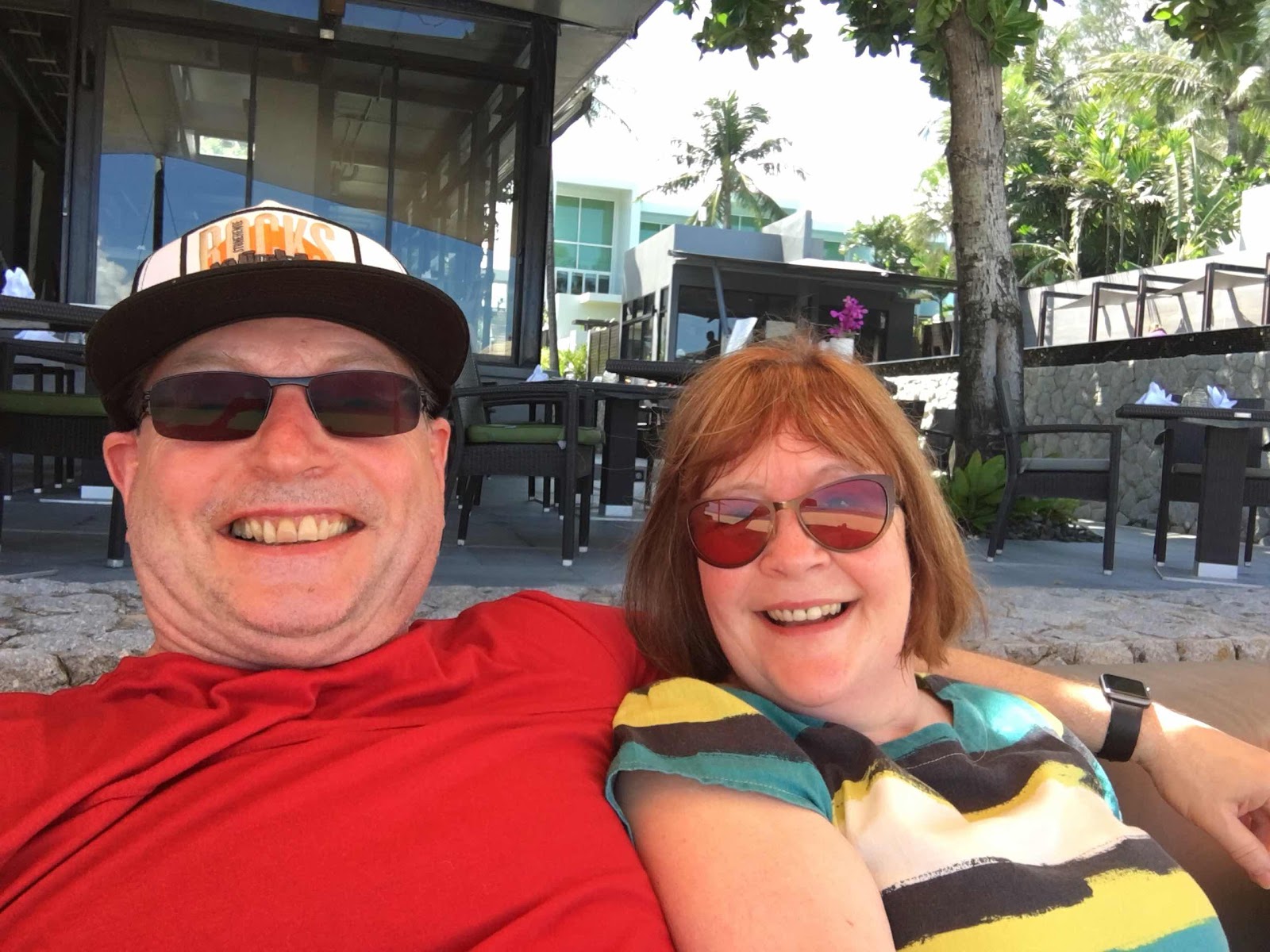 The lack of other guests at the Hotel means the opportunity for people watching and judging is very sparse. The few others are nice Thai families with well behaved children, a few Japanese (always polite) and what appear to be some German couples. We do, however, have the road guard. He lives in a little hut on the Grand Pool Villa side of the street and his sole purpose in life appears to be to escort you over the, very quiet by English standards, road. As you approach the road he shoots out of his hut and puts his arm out to usher You over. He doesn’t seem to take much of a look to see if anything is coming and to be honest I think I prefer to cross myself. But he tries. So he is Man of the day for today.