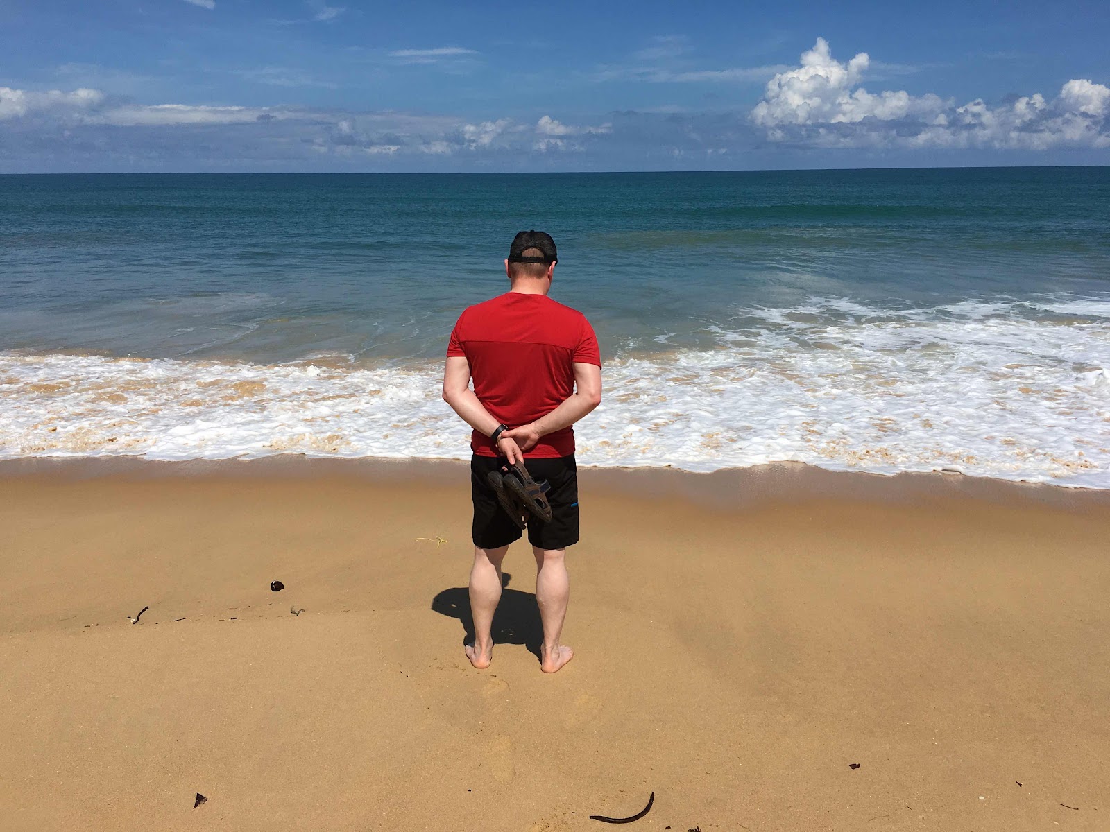 We strolled on the sand. Can’t swim because the red flag is out, and a man in a hut on the beach came out to watch very, very carefully anyone who ventured too close to the sea.